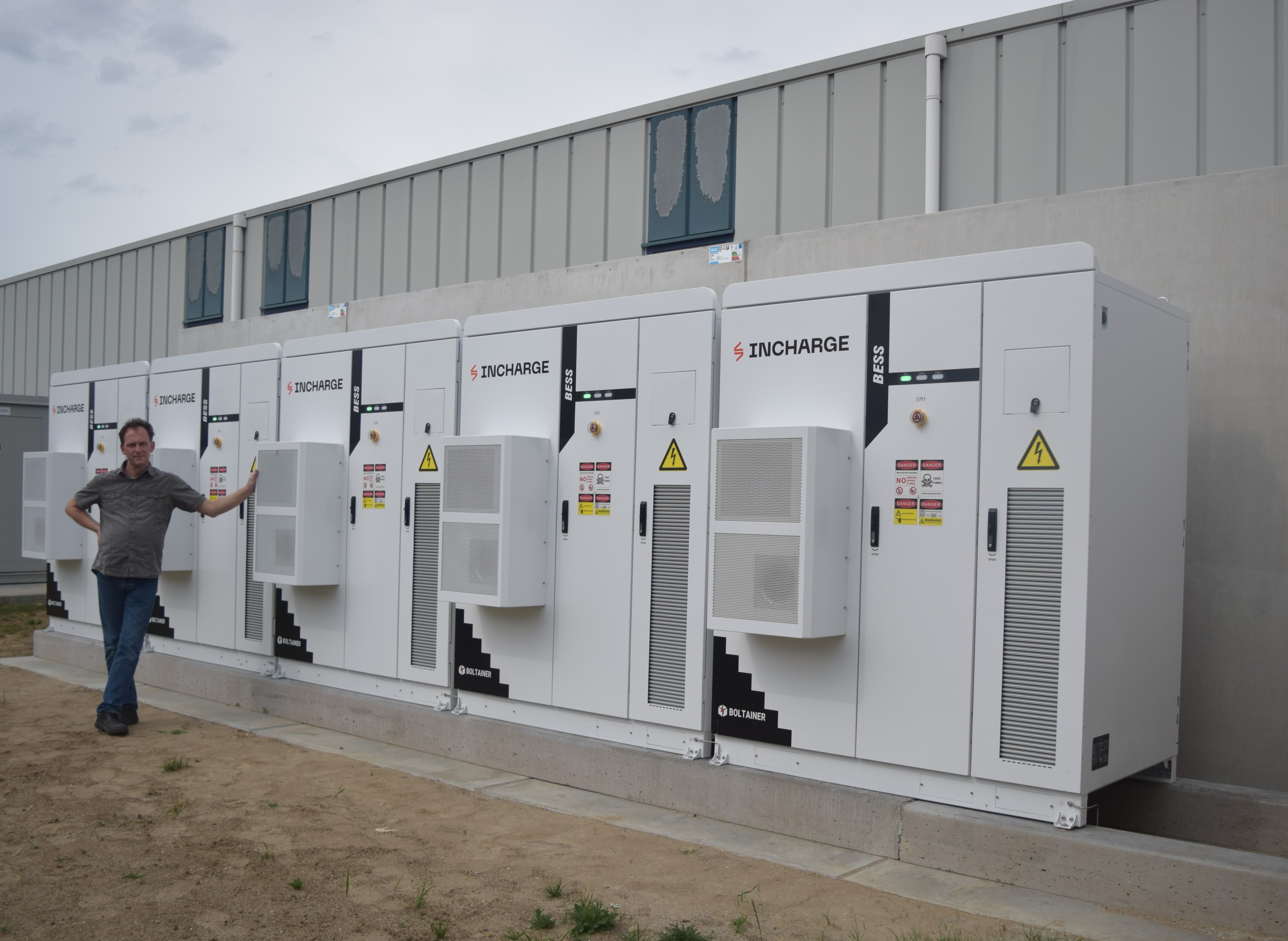 Dino van de Voorde bij de batterijinstallatie achter Van der Voorde Meubelindustrie in Hulst.JPG
